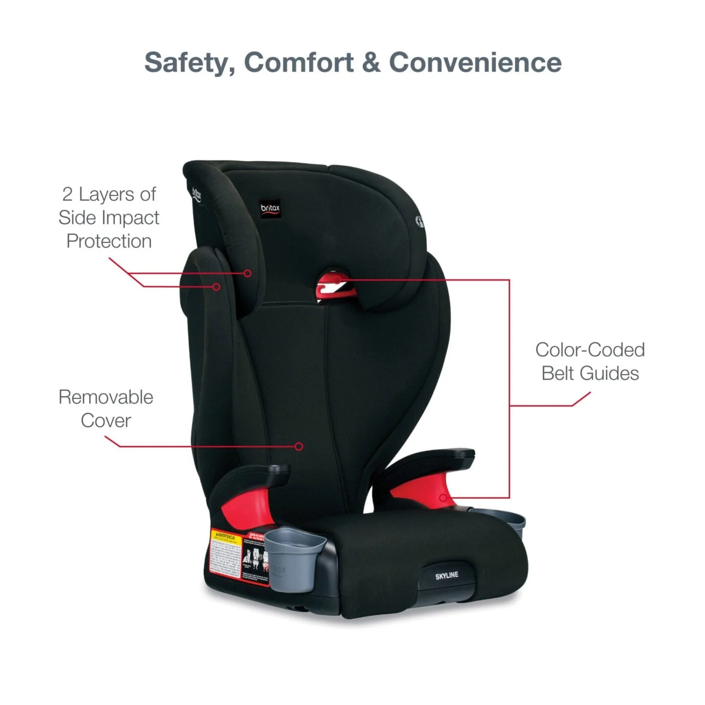 - Color-Coded Vehicle Belt Guides: Make positioning the vehicle seat belt easier than ever.