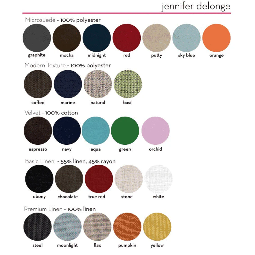 Select any of the gorgeous Jennifer Delonge fabrics as the upholstery for this item