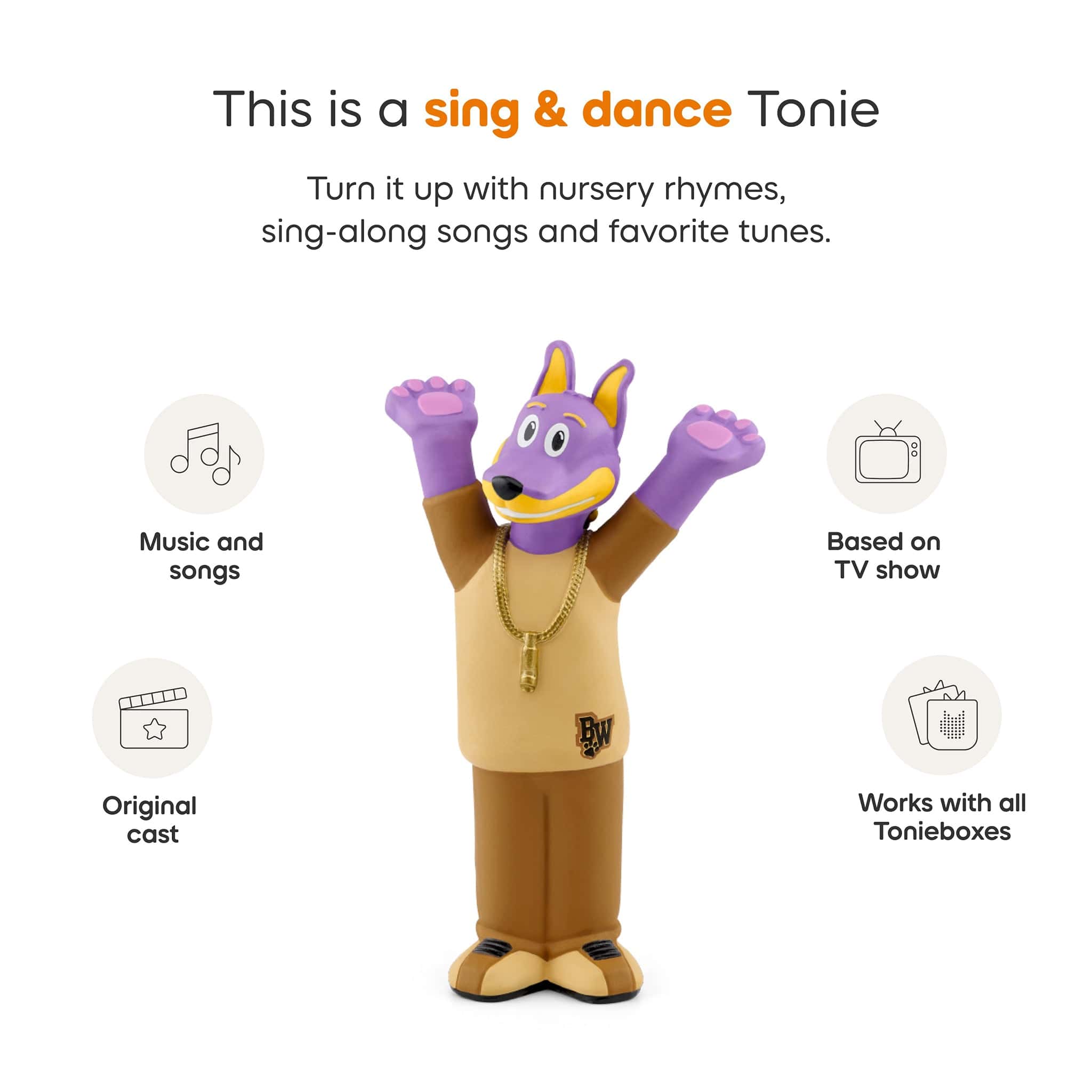 This Tonie features a colorful cast of dogs who educate and entertain children through the power of singing, dancing, and rapping. The cast includes Bow Wizzle (played by Snoop Dogg) and a group of puppies eager to learn! Doggyland's songs are made by award-winning producers and singers who’ll have the whole family singing and dancing along!