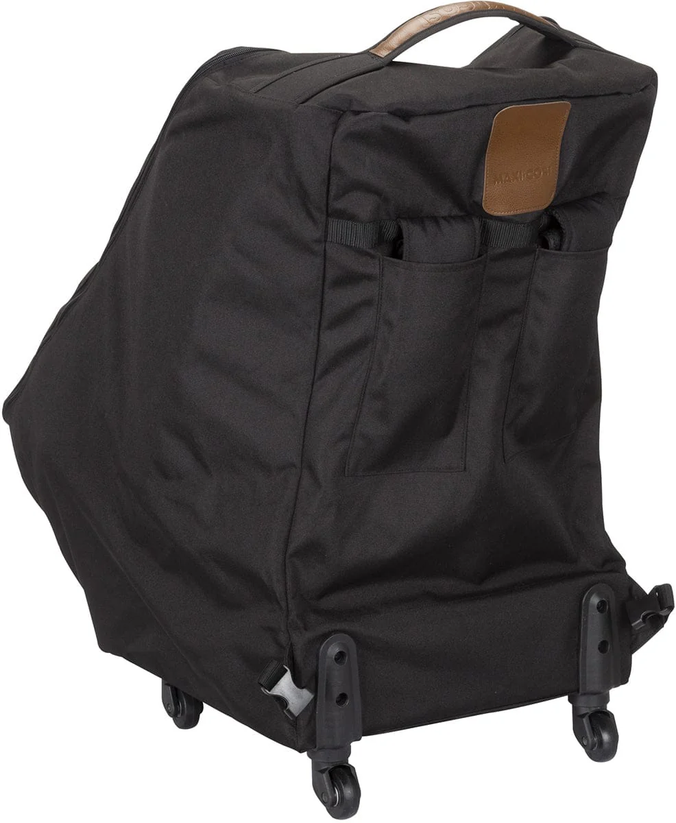 Travel with ease on every adventure with the Maxi-Cosi Wheeled Car Seat Travel Pack, which fits Maxi-Cosi convertible car seats (except for Emme 360™). Its carry handle and convenient roller wheels make it easy to tote around the airport, or anywhere you’re going. With its comfortable, padded straps, you can also wear it on your shoulders as a backpack. The travel bag stays protected from the elements with its woven polyester fabric and nylon webbing. The easy-to-use zipper fully opens to quickly load the car seat into the bag.